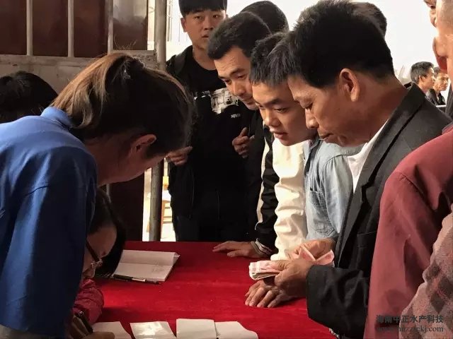 中正种苗珠三角地区售价:南美白对虾苗售价320元/万尾;罗氏沼虾800元/万尾;斑节对虾800元/万尾。当场下订单的养殖户可享受赠送30%的优惠。不少养殖户都拿出一大沓百元大钞交定金。