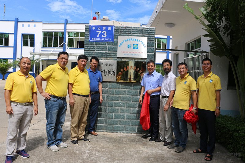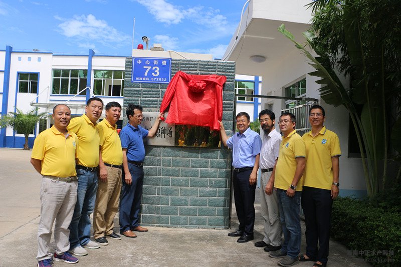 随后,由黄海水产研究所副所长孔杰与东方市海洋与渔业局局长吉家德为国内首个对虾育苗生物安保体系建设示范基地揭牌,公司及各部门主管参与了仪式。