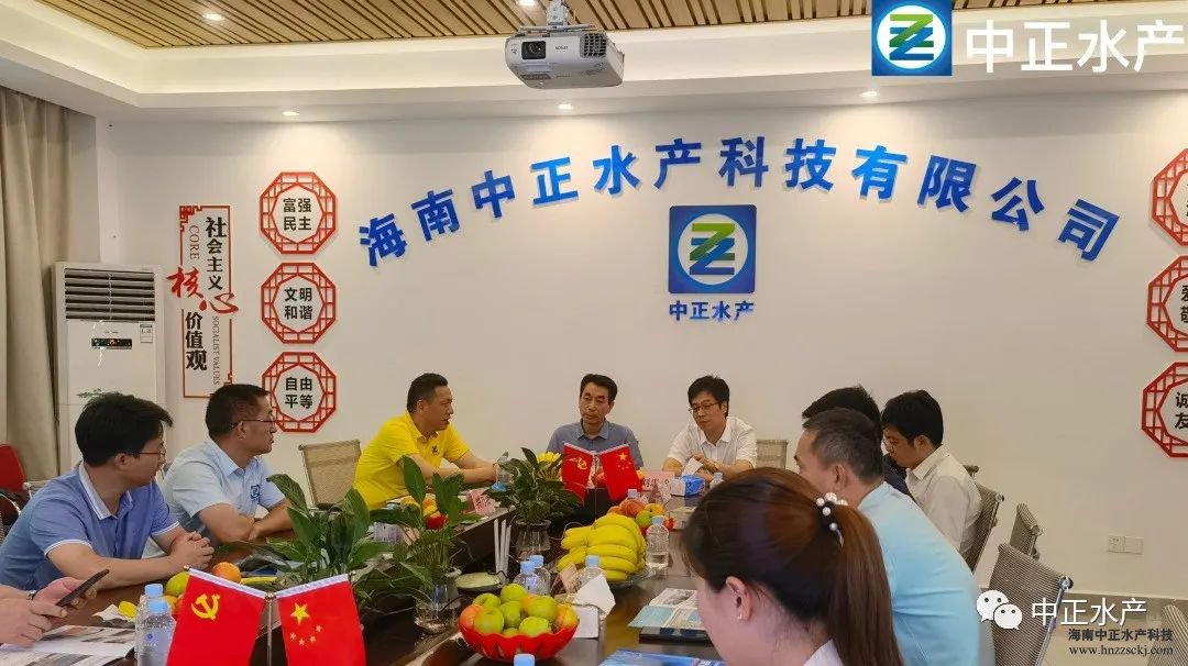 2021年7月31日上午,由全国水产技术推广总站崔利锋站长、海南省农业农村厅副厅长刘忠松、全国总站学会办公室主任李胜利、总站学会办公室工程师王祖峰、省农业农村厅水产养殖处处长宾海、省水产品质量安全检测中心主任刘天密、省农业农村厅水产养殖处李云组成的调研组,在市领导的陪同下,莅临海南中正水产新龙基地实地考察调研。中正水产总裁雷秋凉、副总裁王平、副总经理宋永强等主要负责人陪同。