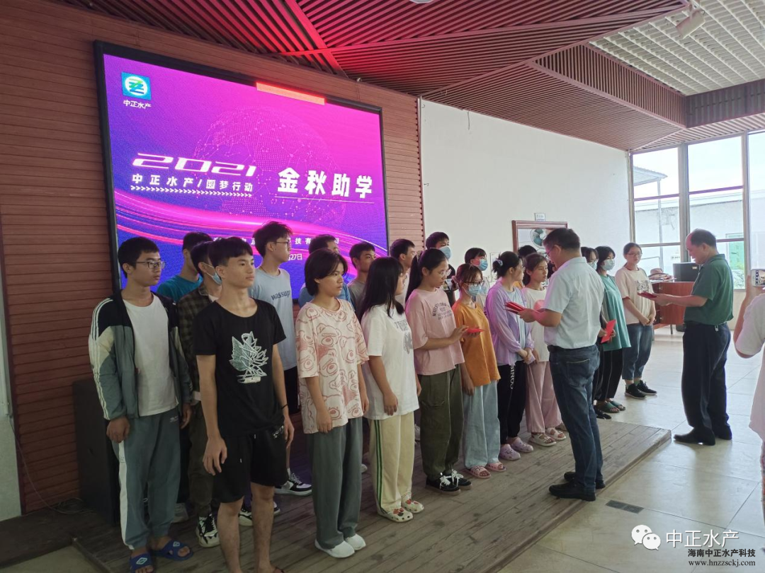 新龙镇党委书记吴培荣首先对莘莘学子取得的优异成绩表示祝贺,同时感谢中正水产奉献的爱心,希望社会各界能多一些像中正水产这样有社会责任心的爱心企业;还提出了两点期望:一是眼下正是众多学子闯过独木桥,奋力起飞高校追梦的时节,希望受助学子能努力奋进,早日成为国家需要的栋梁之才,在学业有成后能回来建设家乡,在家乡创业,同时也要把这份爱心,温暖传递给他人,回馈社会;二是懂得感恩,感恩帮助过自已的人,感恩养育自已的父母。
