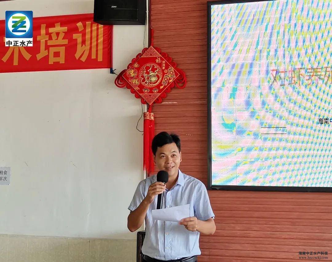 中正水产副总裁王平首先为大家进行了答疑,并承诺中正永远欢迎踏实肯干的人才。最后,王平表示希望通过此次培训会让大家快速学习到斑节对虾养殖要点,掌握养殖技能,为持续推进的乡村振兴工作打下坚实的基础。