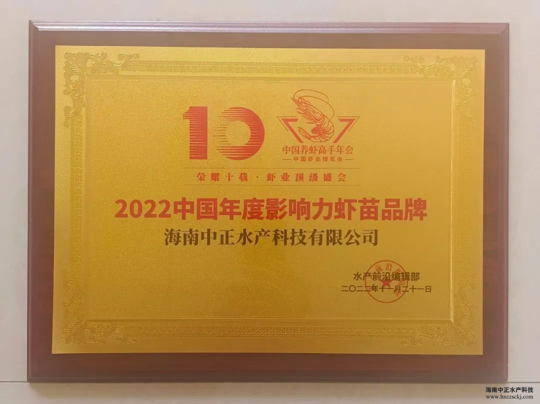 【佳博jiabo(中国)】热烈恭贺中正水产荣获“2022中国年度影响力品牌虾苗