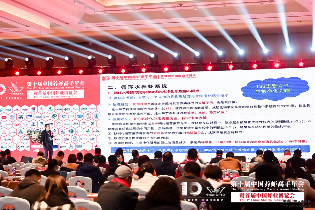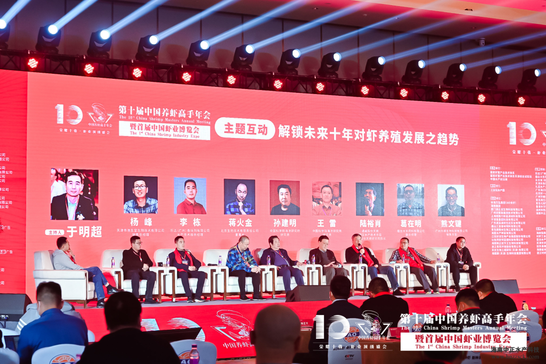第十届中国养虾高手年会暨首届中国虾业博览会以“中国对虾产业转型升级及绿色高效养殖模式”为主题,通过讲座报告、提问答疑互动的方式进行。活动探讨的内容包括:南美白对虾种虾选育与培养、南苗北育技术及标苗场困局、水产检测实验室标准化趋势等若干问题。