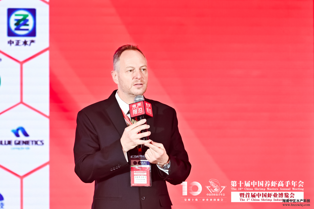 安特蓝德亚太区高级副总裁依泰·布兰斯卡在会议中介绍了全球循环水养虾概况,并和大家探讨了成功案例。