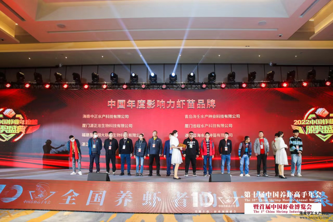 在此次活动上,佳博官网再获殊荣,被评为“2022中国年度影响力虾苗品牌”。中正虾苗再次得到业界认可和肯定!