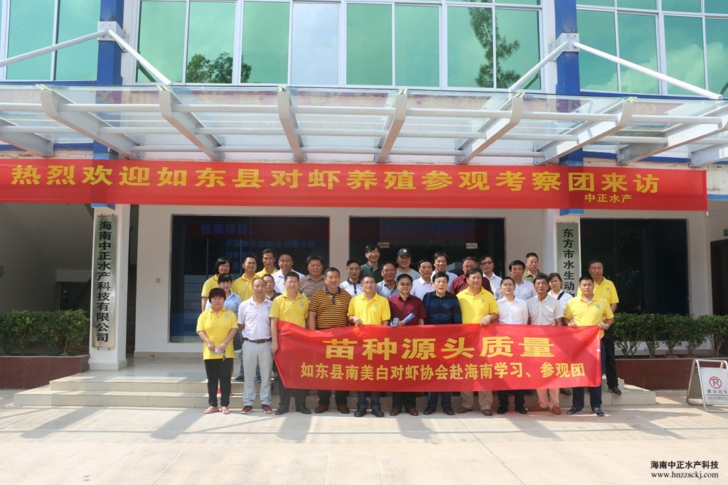 最后,江苏如东县南美白对虾养殖考察团与中正公司领导团队合影留念。考察团对公司的规范化管理、优秀的团队建设、QC的严格把控、生物防控,以及种苗的品质稳定等方面,给予了充分的肯定,对此次中正公司考察之行表示非常满意!