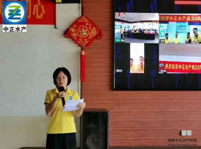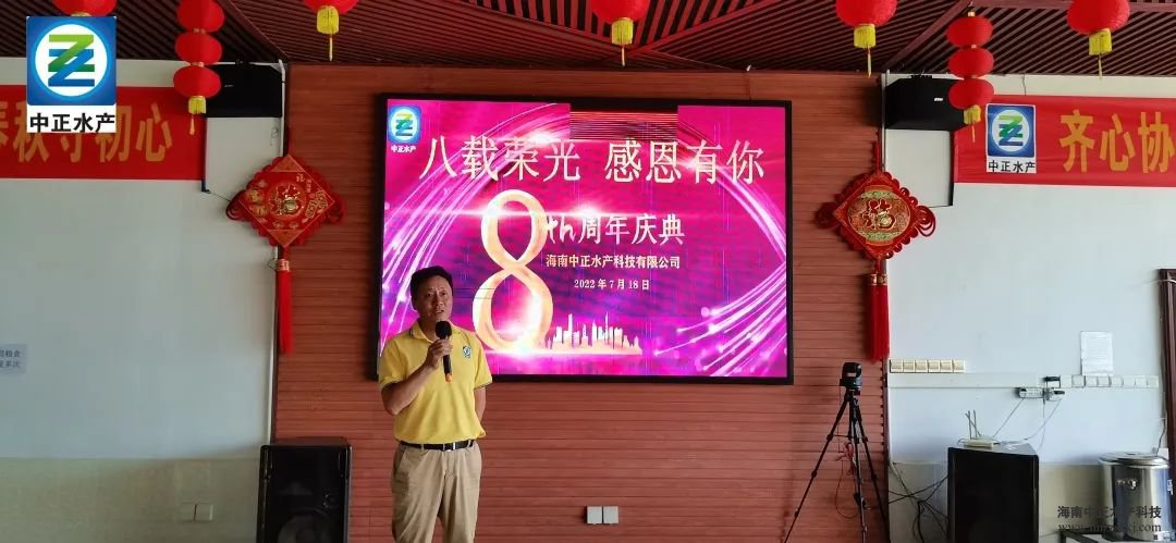 八载春秋守初心,齐心协力谱新篇。2022年7月18日,中正水产成立8周年庆祝大会在公司食堂隆重举行。中正水产董事长雷夏雨、总裁雷秋凉、副总裁王平、生产部副总经理宋永强、各分公司代表及新龙基地全体员工参加了活动。